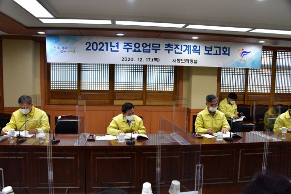 약 1시간가량 진행된 보고회에서 각 부서별로 2020년의 성과와 반성, 향후 개선방향을 도출해 사업추진이 내년으로 차질 없이 이어질 수 있도록 2021년 주요업무 추진계획을 보고하고 모든 부서가 군민과 소통의 힘으로 미래를 설계하는데 최선을 다할 것을 결의했다.