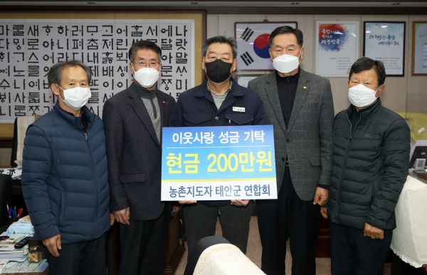 [충청뉴스큐] ‘농촌지도자 태안군연합회’가 지난 22일 태안군청 군수 집무실에서 가세로 군수, 연합회 관계자 등이 모인 가운데 어려운 이웃을 위해 써달라며 200만원을 기탁했다.