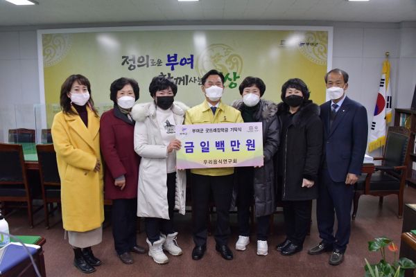 [충청뉴스큐] 우리음식연구회는 지난 21일 부여군청을 찾아 지역인재 육성을 위한 장학금 100만원을 부여군굿뜨래장학회에 기탁했다.