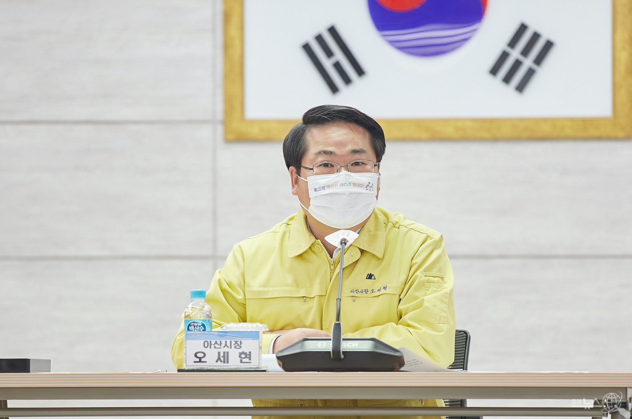 마지막으로 ”아산시 재난안전대책본부장으로서 비상한 각오로 방역 태세 확립 등 특단의 대책을 추진 중이다“며 ”시민 여러분께서도 코로나19와 가축전염병으로부터 안전한 아산시를 위해 적극 동참해주실 것을 부탁드린다“고 말했다.