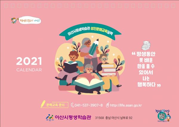 [충청뉴스큐] 아산시평생학습관이 문해교육 학습자들의 교육 성과물을 활용해 2021년 탁상달력을 제작 배부했다.
