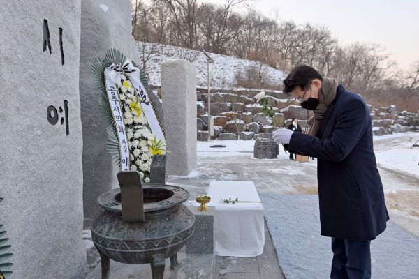 이날 참배는 코로나19 상황을 고려해 애초 계획한 참석 인원을 대폭 축소해 김정섭 시장과 이종운 시의회 의장을 비롯한 시의원, 국·소장 등 10여명이 참석한 가운데 진행됐다.