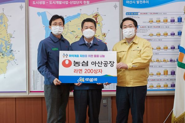 오세현 시장은 “지역사회를 위해 지속적인 나눔을 실천해 주시는 ㈜농심 아산공장에 감사드린다”며 “이러한 따뜻한 손길이 코로나19 등으로 지쳐있는 이웃들에게 위로와 큰 힘이 될 것이다”고 말했다.