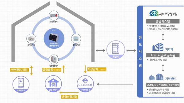 이 서비스는 신규 도입되는 차세대 댁내장비인 태블릿PC 기반 게이트웨이, 응급호출기, 화재감지기, 활동량감지기, 조도·습도·온도감지센서를 통해 독거어르신이 댁내에서 화재, 낙상, 건강상 응급상황 등이 발생 시 실시간으로 소방서에 연계해주는 사업이다.