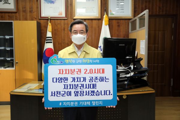 [충청뉴스큐] 노박래 서천군수는 13일 자치분권 2.0시대 개막을 응원하기 위한 ‘자치분권 기대해’챌린지에 동참했다.
