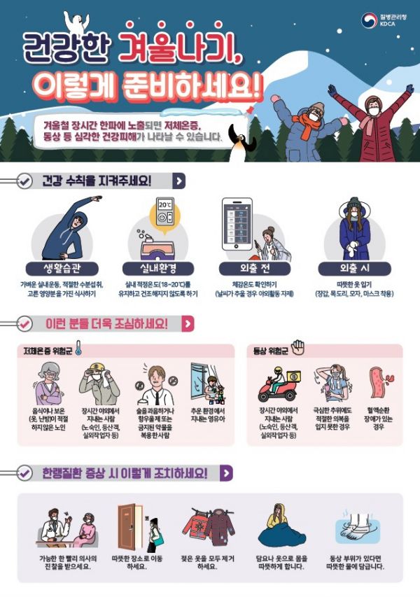 특히 노약자는 체온 유지에 취약하기 때문에 실외 뿐 아니라 난방이 적절하지 않는 실내에서도 주의가 필요하다.