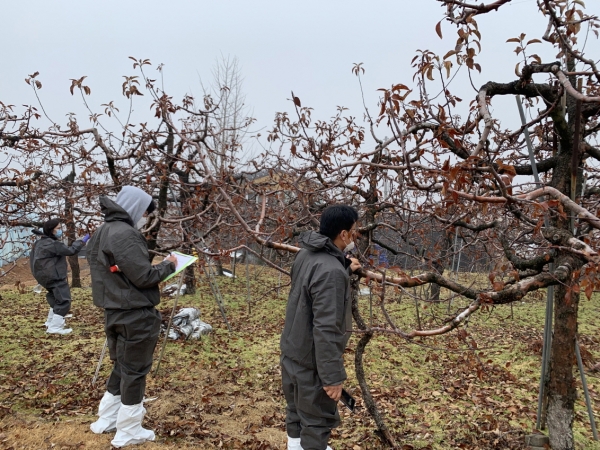 [충청뉴스큐] 예산군농업기술센터는 과수 화상병 확산 예방을 위해 22일 농림축산검역본부, 충남농업기술원, 예산군농업기술센터 등 3개 기관과 합동으로 과수 화상병 발생조사, 궤양제거 등 정밀예찰을 실시했다.