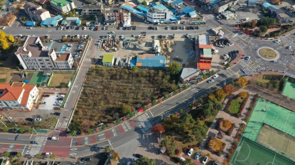 첫 이륙 목적은 가족문화센터 및 평생학습관 건립사업 대상지 현장 촬영. 28일 군에 따르면, 민원봉사실 드론 비행대는 26일 건설도시과의 요청으로 현장에 출동해 원하는 각도와 위치에서 정밀한 드론 촬영에 임했다.