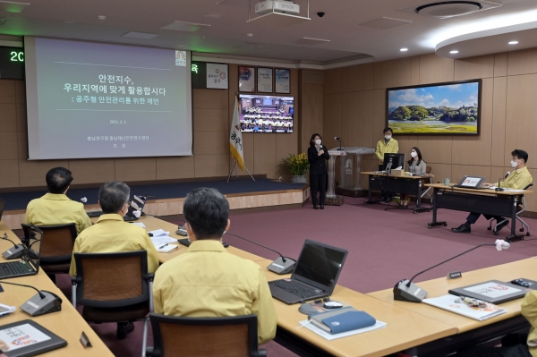조성 충남재난안전연구원센터장의 강의로 진행된 이번 특강은 코로나19 상황을 고려해 공주시 회의영상전송시스템을 활용, 각 부서 모니터를 통해 이뤄졌다.