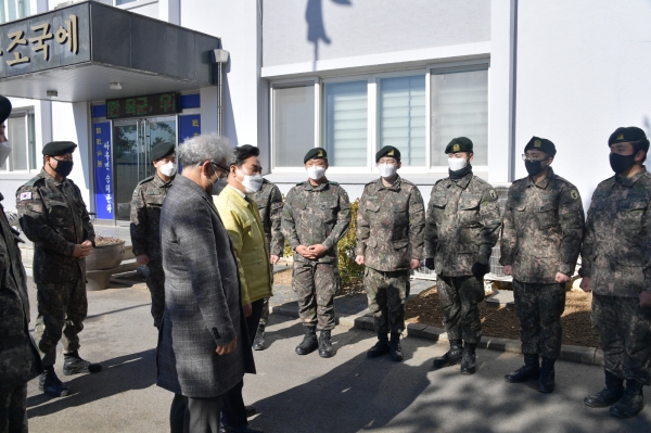 이번 위문에는 코로나19 방역수칙을 준수해 수행인원을 최소화하고 부여군통합방위협의회 의장인 박정현 군수와 통합방위협의회위원 진광식 부여군의회의장이 동행해명절에도 고향에 가지 못하고 병역 의무와 책임을 다하고 있는 군경 관계자들을 위로하고 노고를 치하했다.