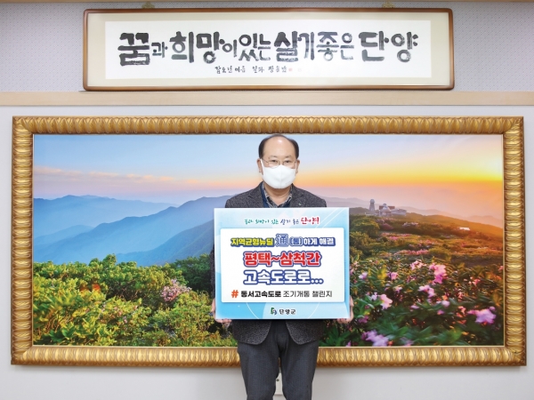 [충청뉴스큐] 류한우 단양군수가 지난 16일 국가균형발전의 염원을 담아 ‘동서고속도로 조기 개통’ 챌린지에 동참하며 전 국민적 공감대 형성 필요성을 강조했다.
