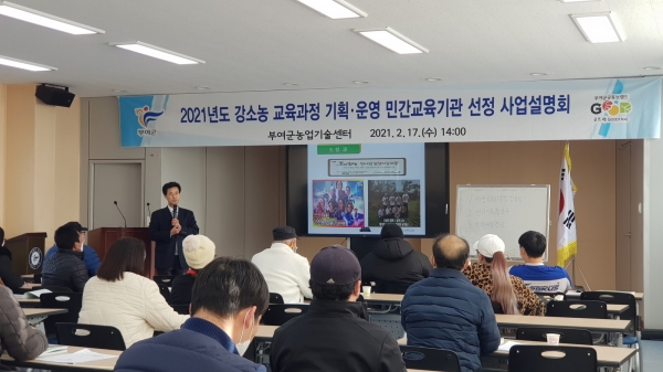 [충청뉴스큐] 부여군이 강소농 교육생들이 설명회에 직접 참여해 민간교육기관을 공정하게 선정하고자 지난 17일 사업설명회를 개최했다.