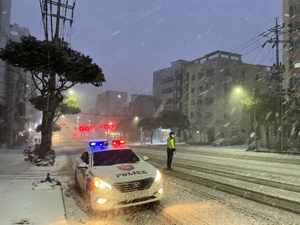 자치경찰단은 “오늘 오후까지 폭설이 예보됨에 따라 가급적 대중교통을 이용하고 월동 장비를 갖추는 등 눈길 교통안전에 유의해줄 것”을 당부했다.