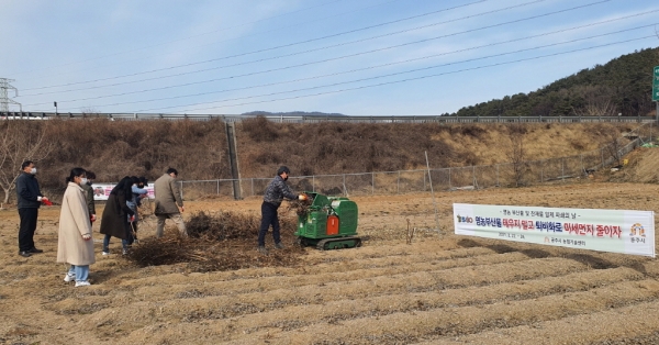 또한, 농기계임대사업소에서 보유중인 잔가지파쇄기 1대와 목재파쇄기 7대 등을 임대하고 있다며 마을 단위 공동 이용 시 무료로 이용할 수 있는 만큼 적극 활용해주길 당부했다.