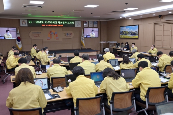 시는 지난 2일 시청 대백제실에서 김정섭 시장 주재로 2022년도 국·도비 예산 확보전략 보고회를 개최하고 정부예산 확보에 대한 전략방안을 논의했다.