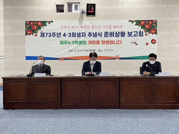 [충청뉴스큐] 제주특별자치도는 3일 오전 10시 제주도청 탐라홀에서 ‘최승현’ 행정부지사 주재로 제73주년 4·3희생자 추념식 준비상황 보고회를 개최했다고 밝혔다.