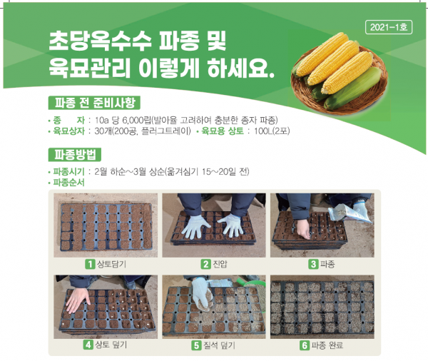 금번 1단계로 보급하는 리플릿 2,000부에는 파종 준비사항, 파종방법, 육묘 관리, 정식 전 포장 준비, 옮겨심기 방법 등을 싣고 있어 현장에서 도움이 될 것으로 기대된다.
