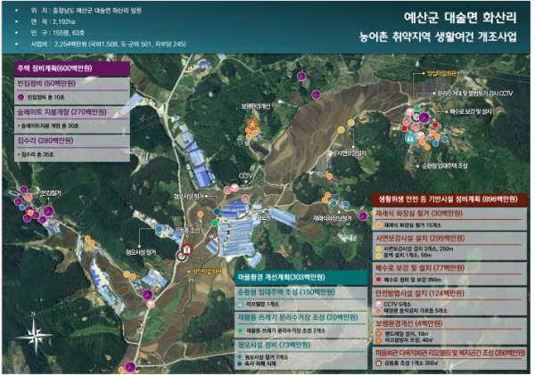 [충청뉴스큐] 예산군은 2021년 농어촌 취약지역생활여건개조사업에 공모를 신청한 삽교읍 하포1리, 대술면 화산리 2개 마을이 모두 최종 선정되는 쾌거를 거뒀다.
