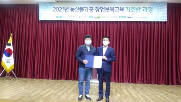 [충청뉴스큐] 예산군은 지난 9일 농업기술센터 교육관에서 농산물가공 창업보육교육 기초반 수료생 48명을 대상으로 수료식을 진행했다.