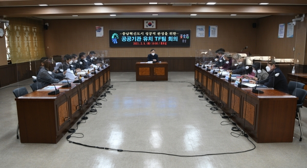 지난 2019년 조직된 TF팀은 길영식 부군수를 단장으로 13개의 실무팀으로 구성됐으며 수시 보고회를 개최해 실무적인 업무유관기관 및 소속부처 수시 방문, 유치대응 논리 개발, 이전관련 공공기관 동향 정보 공유, 팀별 추진내용 보완·점검 등을 중점 논의하며 충남혁신도시의 성공적 완성을 위한 선봉장역할을 맡는다.