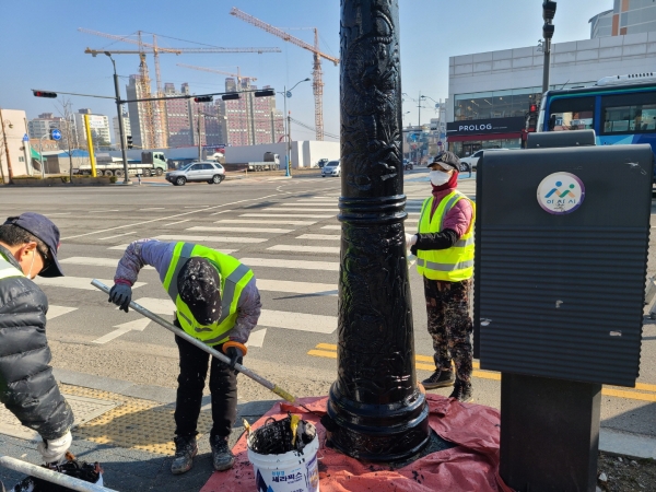 [충청뉴스큐] 아산시가 도색이 벗겨지고 퇴색된 노후 주철 가로등 도색작업을 실시한다.