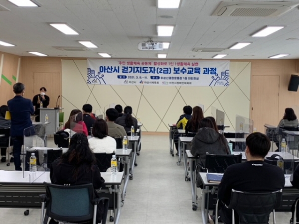 [충청뉴스큐] 아산시가 지난해 걷기지도자 2급 양성과정 교육을 수료한 40명을 대상으로 3월 9일부터 11일까지 3일간 이순신종합운동장에서 걷기지도자 2급 보수교육을 실시했다.