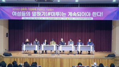 [충청뉴스큐] 전라남도는 29일 전남여성플라자에서 성폭력·가정폭력 추방주간을 맞아 ‘#미투는 계속되어야 한다’라는 주제로 기념행사를 개최했다. 추방주간은 25일부터 12월 1일까지다.
