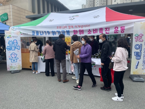 [충청뉴스큐] 청양군은 코로나19 확산으로 고통 받는 지역 화훼 농가를 살리기 위해 3월 27일부터 4월 28일까지 세종시 로컬푸드 직매장에서 화훼 소비촉진 행사를 개최한다고 밝혔다.