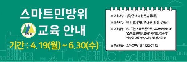 [충청뉴스큐] 청양군이 지난해에 이어 올해도 민방위대원 1191명에 대해 온라인교육을 실시한다고 1일 밝혔다.