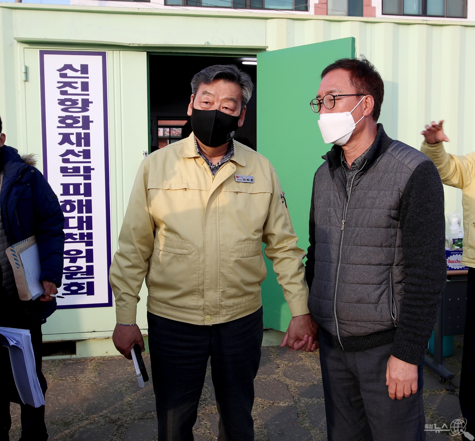 태안군은 지난 3월 23일 일어난 ‘신진도항 선박화재사고’의 효율적인 사고 수습과 피해대책 추진을 위해 태안군 재난안전대책본부(본부장 가세로 태안군수)를 3월 24일 가동하고, 피해수습 및 피해민 생계구호, 대체선박 건조 등 자활대책, 생태계 보전 등 전방위적 노력을 펼치고 있다.