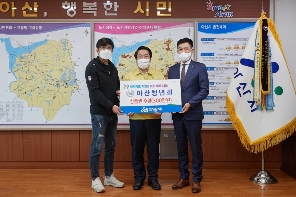 이날 후원한 상품권은 코로나19 장기화에 따라 3월 예정이었던 아산청년회 제51주년 창립총회를 대신해 소외계층 지원 현물기부를 추진, 상품권 1만원권 300장을 마련한 것이다.