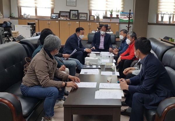 군 농업축산과장과 조무형 회장을 비롯한 10여명의 임원들은 농업인복지회관에 모여 회의를 개최했으며 2021년 사업 중 현장 교육과 선진지 견학 등 배정된 예산을 만장일치로 반납하기로 결정했다.
