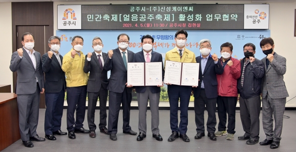 [충청뉴스큐] 공주시는 5일 시청 집현실에서 ㈜신성케이엔씨와 민간주도형 겨울축제 개발 추진을 위한 업무협약을 체결했다.