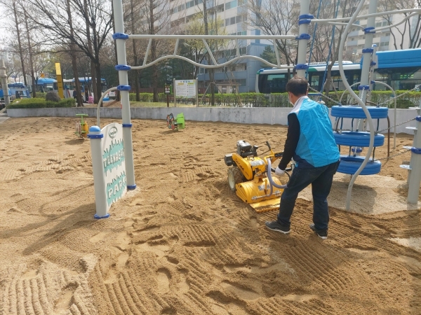이에 시는 75개소 모래놀이터 1만1701㎡에 1억5000만원을 들여 연중 3회 모래클리닝을 실시하고 있으며 현재 1회차 작업이 진행 중이다.