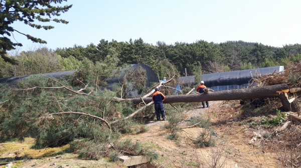 벌목 시 인접 주택이나 주변 시설물에 피해가 있을 수 있어 벌목 전문가와 중장비를 투입해 집중호우가 시작되는 5월 이전에 마무리한다는 계획이며 벌목된 수목은 땔감 등으로 사용할 수 있도록 적당한 크기로 잘라 신청자에게 전달한다.