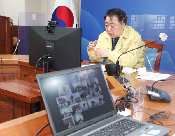 [충청뉴스큐] 한범덕 청주시장이 12일 소회의실에서 온라인 영상회의로 열린 주간업무 보고회에서 코로나19 의심증상이 있다고 판단되면 진단검사를 즉시 받아달라고 호소했다.
