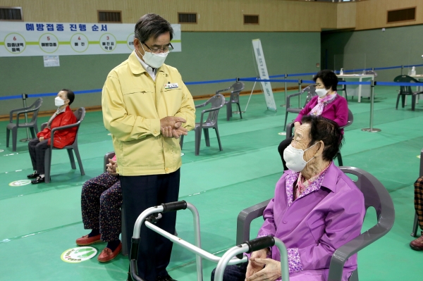이날 현장을 방문한 노박래 서천군수는 “어르신들이 불편함 없이 접종받을 수 있도록 전세버스를 지원하고 동선을 점검하는 등 만반의 준비를 마쳤으니 편안한 마음으로 접종하시기 바란다”며 “접종 후 이상반응까지 꼼꼼히 살펴 어르신들이 안전하게 접종을 마칠 수 있도록 더욱 노력해 달라”고 현장 직원들에게 당부했다.