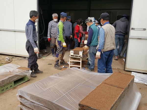 또한, 상자쌓기 할 때는 20∼25단 이하로 쌓아 출아 중 열에 의한 피해를 받지 않도록 한다.
