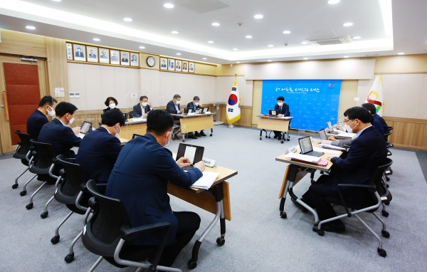 [충청뉴스큐] 서산시가 지난 28일 시청 상황실에서 맹정호 서산시장 주재로 부시장, 국장, 직속기관장 등이 참석한 가운데 2021년 공모사업 발굴 추진상황 보고회를 개최했다.