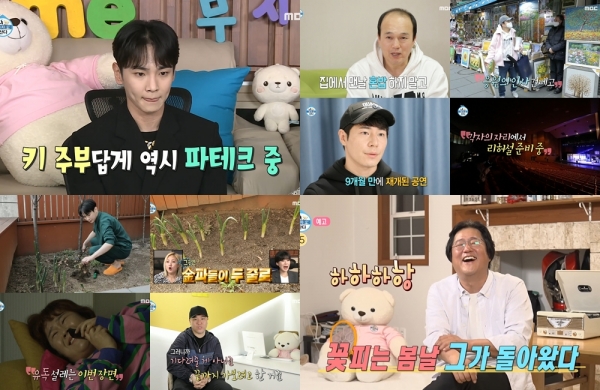 이밖에도 집 옥상에서 즐기는 ‘옥캉스’, 테라스 캠핑 등 집 안에서 즐길 수 있는 무지개 회원들의 각양각색 ‘집콕’ 라이프는 시청자들에게 코로나 시대를 이겨내는 슬기로운 ‘집콕’ 방법을 제시하기도. ‘나 혼자 산다’ 샤이니 키는 미니 텃밭에서 대파를 수확하는 ‘파테크’ 모습이 화제를 모으며 출연 당시 비드라마 출연자 화제성 1위를 차지하는 것은 물론 뉴스에까지 등장해 모두를 깜짝 놀라게 만들었다.