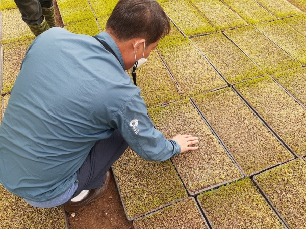 볍씨 파종량은 1상자에 120g∼130g 정도가 적당하며 논에 묘판을 늘어놓은 뒤에는 모 끝이 마르지 않도록 부직포를 덮고 수분이 부족하지 않게 관리해야 한다.