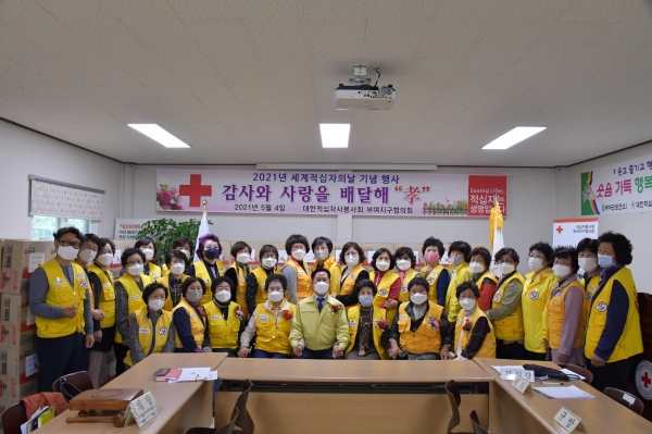 대한적십자사봉사회 부여지구협의회에서는 독거노인과 취약계층 대상으로 사랑나눔 급식지원과 집수리 봉사 및 김장나누기, 재난재해시 긴급구호물품 전달, 위기가정 긴급지원, 쌀기탁 등 매년 어려운 이웃을 위해 지속적인 봉사활동을 펼치고 있다.