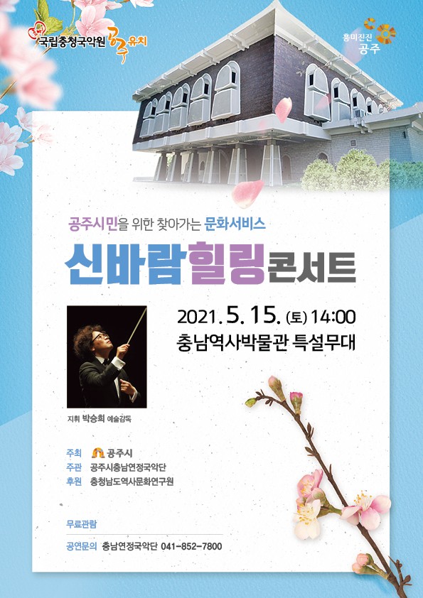 [충청뉴스큐] 공주시충남연정국악단은 오는 15일 오후 2시 충남역사박물관에서 ‘신바람힐링콘서트’를 개최한다.