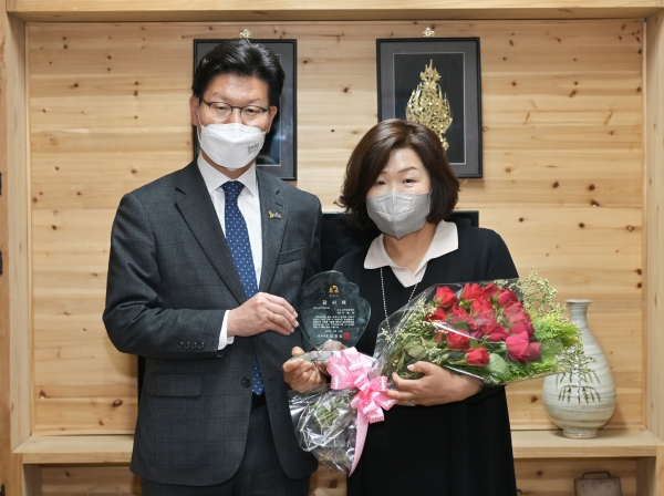 김정섭 시장은 이종옥 화백에게 감사패를 전달하고 “공주한옥마을이 한옥과 지역예술인들의 작품이 어우러지는 공간으로 탈바꿈하는 계기를 마련해 주셔서 정말 감사드린다”고 말했다.