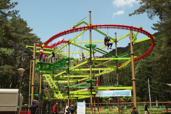 [충청뉴스큐] 보은군이 속리산면 갈목리에 조성한 공중모험 놀이시설인 ‘스카이트레일’이 인기몰이 중이다.