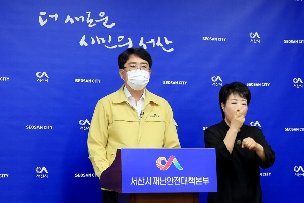[충청뉴스큐] “22일까지 관내 외국인 노동자를 고용하고 있는 사업주와 근로자에 대해 코로나19 검사를 전면 실시한다” 맹정호 서산시장이 20일 긴급 브리핑을 열고 시민들에게 당부했다.