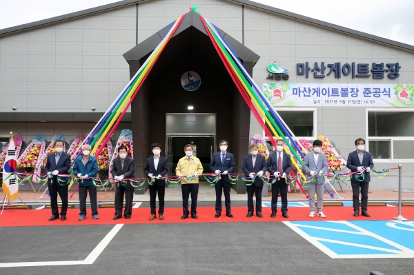 이번에 준공된 마산게이트볼장은 주민생활체육시설을 확대해 건강증진을 목적으로 총 5억원의 사업비를 들여 마산면 신장리 문화활력소 인근 1만3611㎡ 부지에 건물연면적 470㎡ 철골조로 2020년 11월에 착공해 금년 5월에 완공됐다.