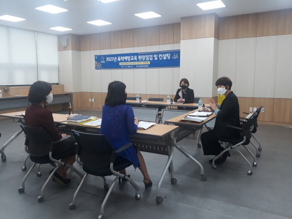 현장점검은 컨설팅 목적과 취지 설명 2020년 폭력예방교육 추진실적 이행상황 점검 2021년 교육운영방안에 대한 컨설팅 실시 관리자와 고충상담원, 교육대상자 인터뷰 등을 주된 내용으로 진행됐다.