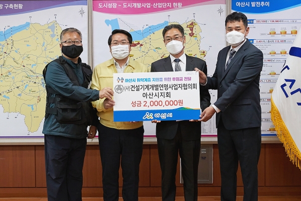 오세현 아산시장은 “기부문화 확산에 적극 동참해 주신 건설기계개별연명사업자협의회에 감사드린다”며 “기부문화 확산 및 맞춤형 복지 서비스 제공을 위해 최선을 다하겠다”고 말했다.