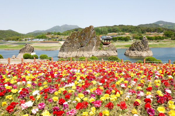 도담삼봉에 2만송이 백일홍과 석죽
